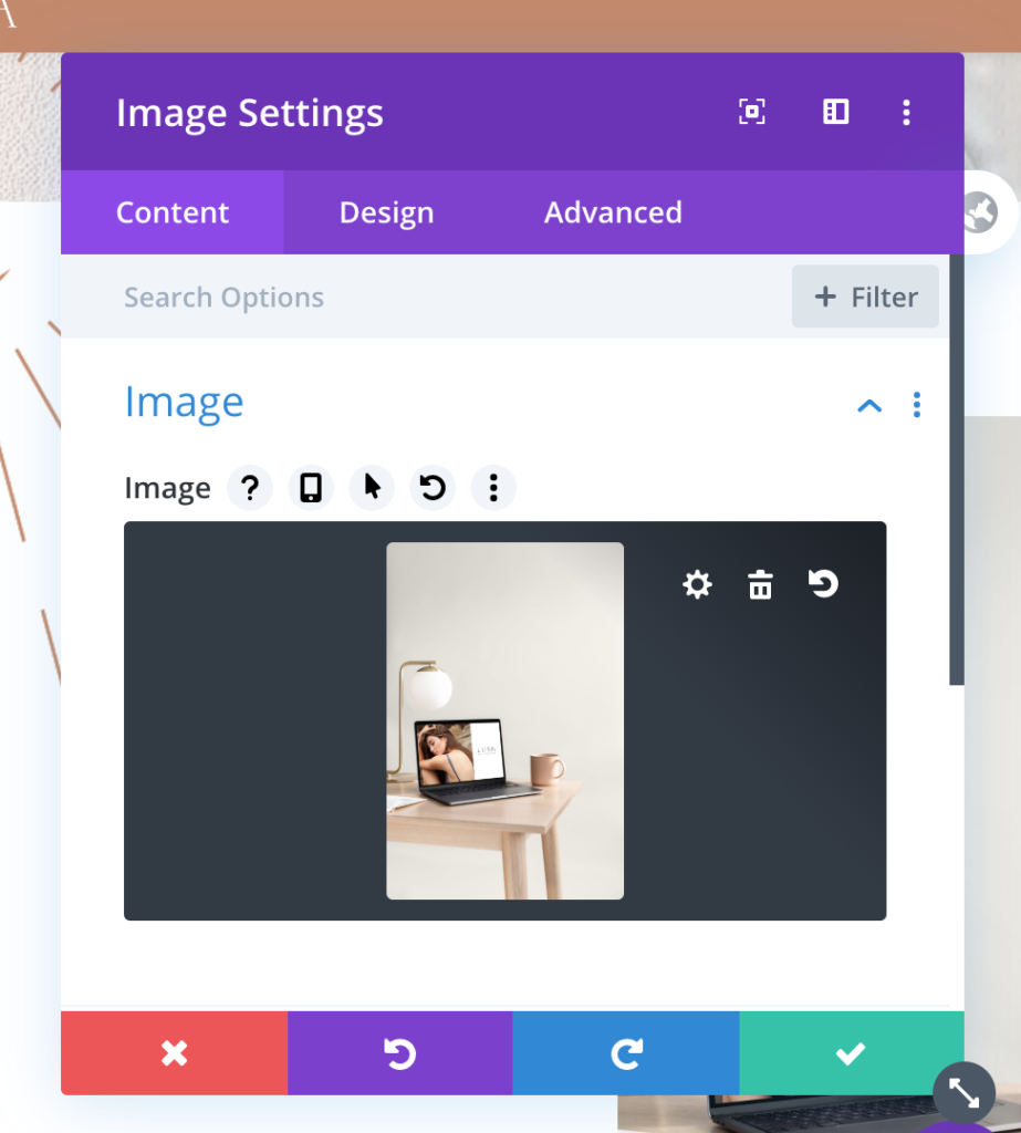 7. Once you have changed the image, click on the green ‘tick’ at the bottom of the module window. That will then save the image module.